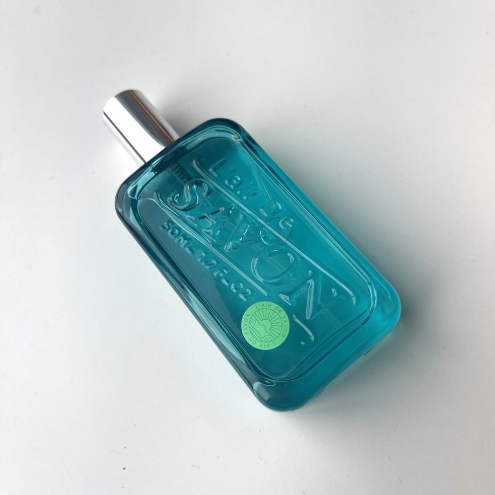 透明感のあるブルーのボトルが印象的な「レールデュサボン オードトワレ センシュアルタッチ」。